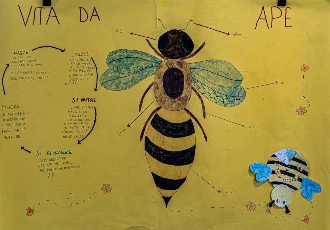 L'ape regina depone le uova che poi diventeranno api,il fuco sposa l'ape regina e l'ape operaia raccoglie il miele.